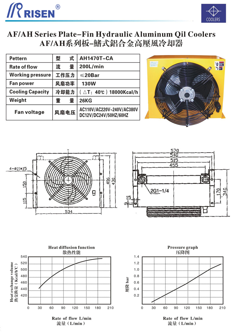 RISEN 日森 板式 風冷卻器 風冷 AH1470TT-CA 200L