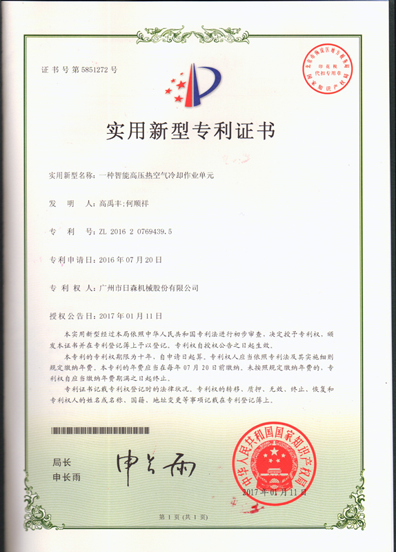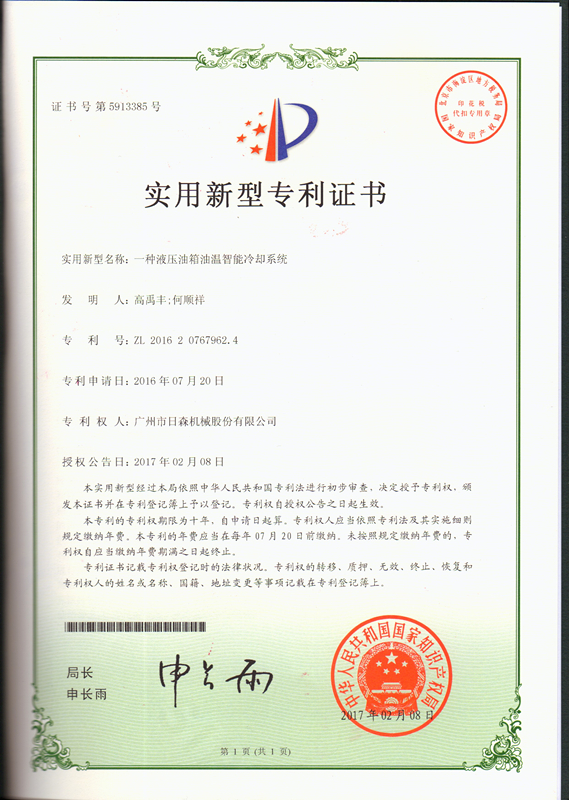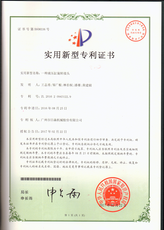 日森股份近日收到中華人民共和國(guó)國(guó)家知識(shí)產(chǎn)權(quán)局頒發(fā)的四項(xiàng)《實(shí)用新型專利證