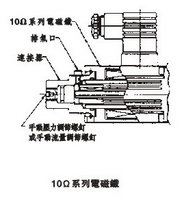 ●為使控制保持穩(wěn)定,要把空氣全部排掉并用油充滿電磁閥的鐵芯。為了排掉空氣要逐漸松開比例閥端部的排氣口。排氣口的位置可以改變,以使空氣可以容易地從閥中排出。要改變排氣口位置時(shí),可旋轉(zhuǎn)電磁鐵連接器,直至排氣口到達(dá)所要求的位置(見右圖)。