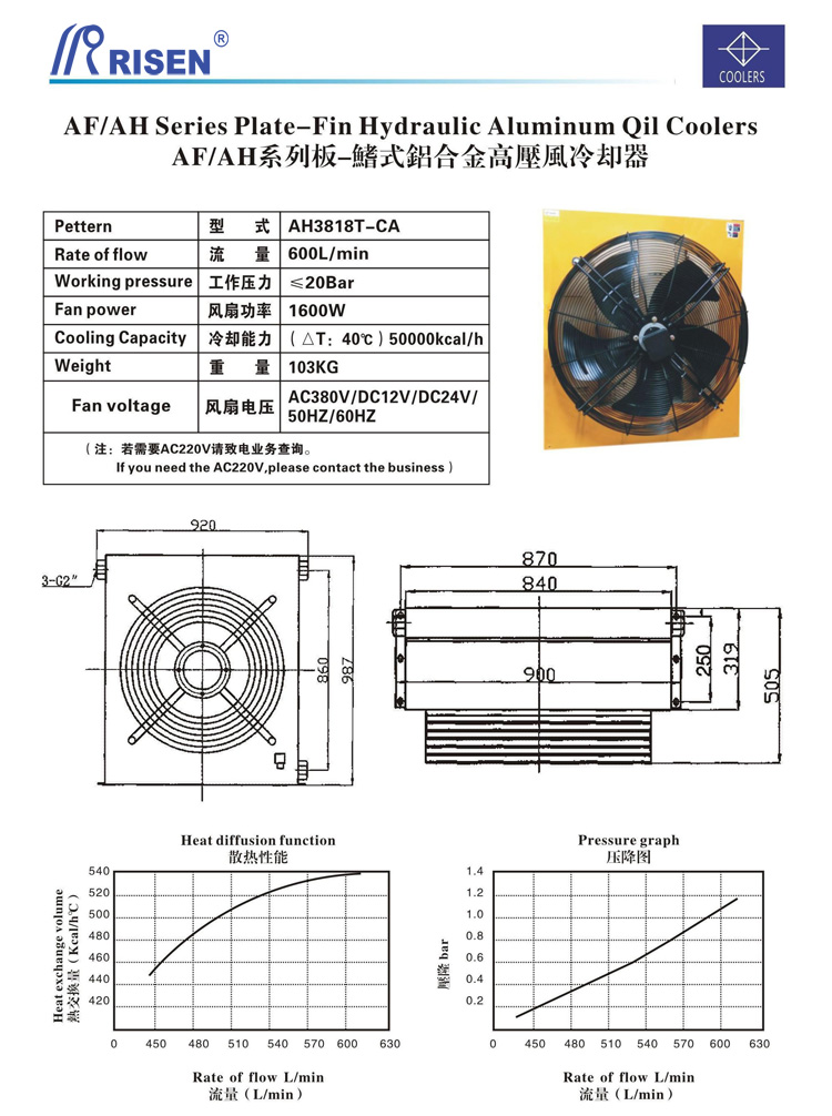 RISEN 日森 板式 風冷卻器 風冷 AH3818TT-CA 600L
